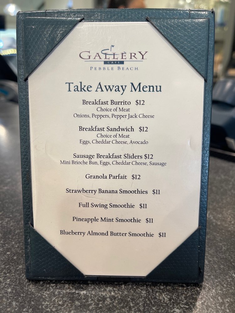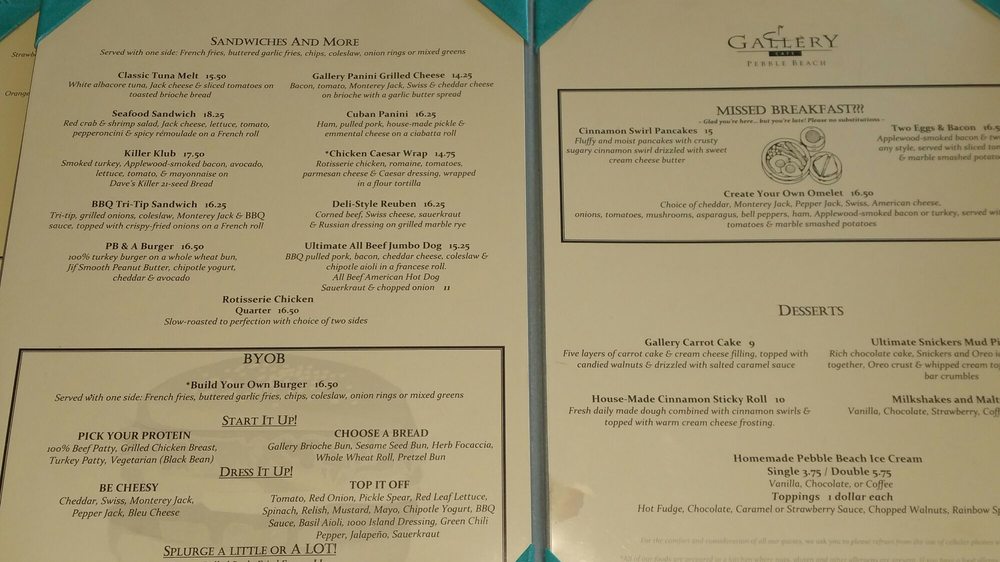 Welcome to the Gallery Café, a charming spot nestled at 1700 17 Mile Dr, Pebble Beach, CA. This American breakfast and brunch haven shines with its vibrant menu and friendly atmosphere, ideal for families and groups alike.